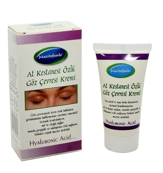 - Göz çevresindeki rahatlatıcı ve anında gerginleştirici etki yağ ve nem dengesinin sağlanmasında botanik çözüm; Mecitefendi at kestanesi özlü göz çevresi kremi.