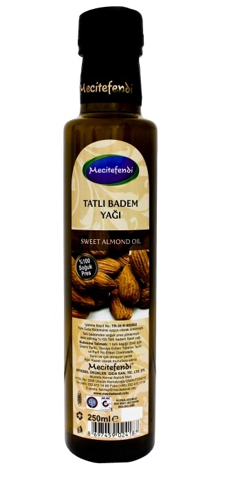 Soğuk pres yöntemi ile elde edilmiş 100% Tatlı Badem yağıdır. İçeriğinde hiç bir kimyasal madde bulundurmayan Mecitefendi Tatlı Badem yağını gönül rahatlığı ile kullanabilirsiniz.