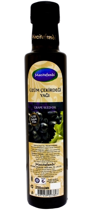 Soğuk pres yöntemi ile elde edilmiş 100% Üzüm Çekirdeği yağıdır. İçeriğinde hiç bir kimyasal madde bulundurmayan Mecitefendi Üzüm Çekirdeği yağını gönül rahatlığı ile kullanabilirsiniz.